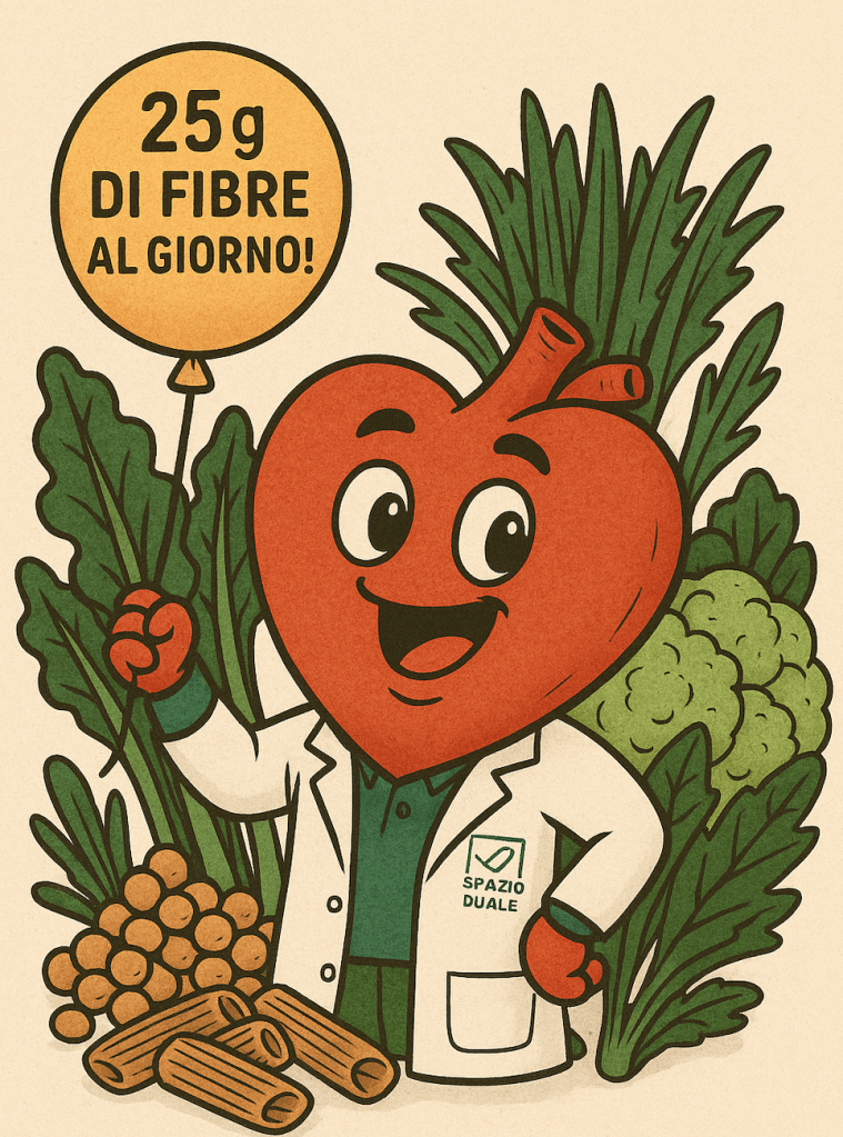 Una dieta ricca di fibre fa bene anche al cuore e alle arterie. Numerosi studi epidemiologici indicano che chi consuma più fibre alimentari va incontro a meno malattie cardiovascolari. Di recente, un’ampia meta-analisi di 64 studi prospettici (oltre 3,5 milioni di partecipanti) ha confermato il potente effetto protettivo: il gruppo con l’assunzione più alta di fibre aveva un rischio di mortalità cardiovascolare ridotto del 26% rispetto a chi ne consumava di meno. In generale, l’alimentazione ricca di fibre è risultata associata anche a una riduzione del 23% della mortalità per tutte le cause (Ramezani F., et al 2024). segno di un impatto positivo a 360° sulla salute. Ma come proteggono il nostro cuore? Le fibre, soprattutto quelle solubili presenti in legumi, avena e frutta, contribuiscono a ridurre il colesterolo “cattivo” LDL legandosi ai grassi e agli acidi biliari nell’intestino. Inoltre aiutano a controllare la pressione sanguigna e l’infiammazione. Un’analisi umbrella su studi clinici controllati ha rilevato ad esempio che un maggiore apporto di fibre determina significative riduzioni del colesterolo totale e LDL nel sangue (Fu L., et al 2022), oltre a piccoli ma significativi cali della pressione arteriosa. In parole povere, aggiungere fibre al nostro piatto ogni giorno aiuta a mantenere il cuore sano, abbassando i fattori di rischio cardiovascolare e la probabilità di infarto e ictus.